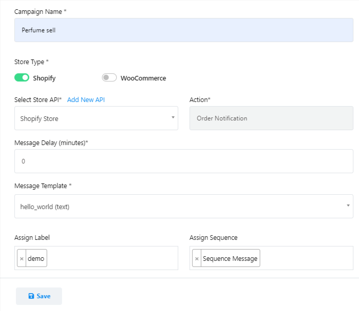 - Access the WooCommerce and Shopify Automation section in WabaHero.